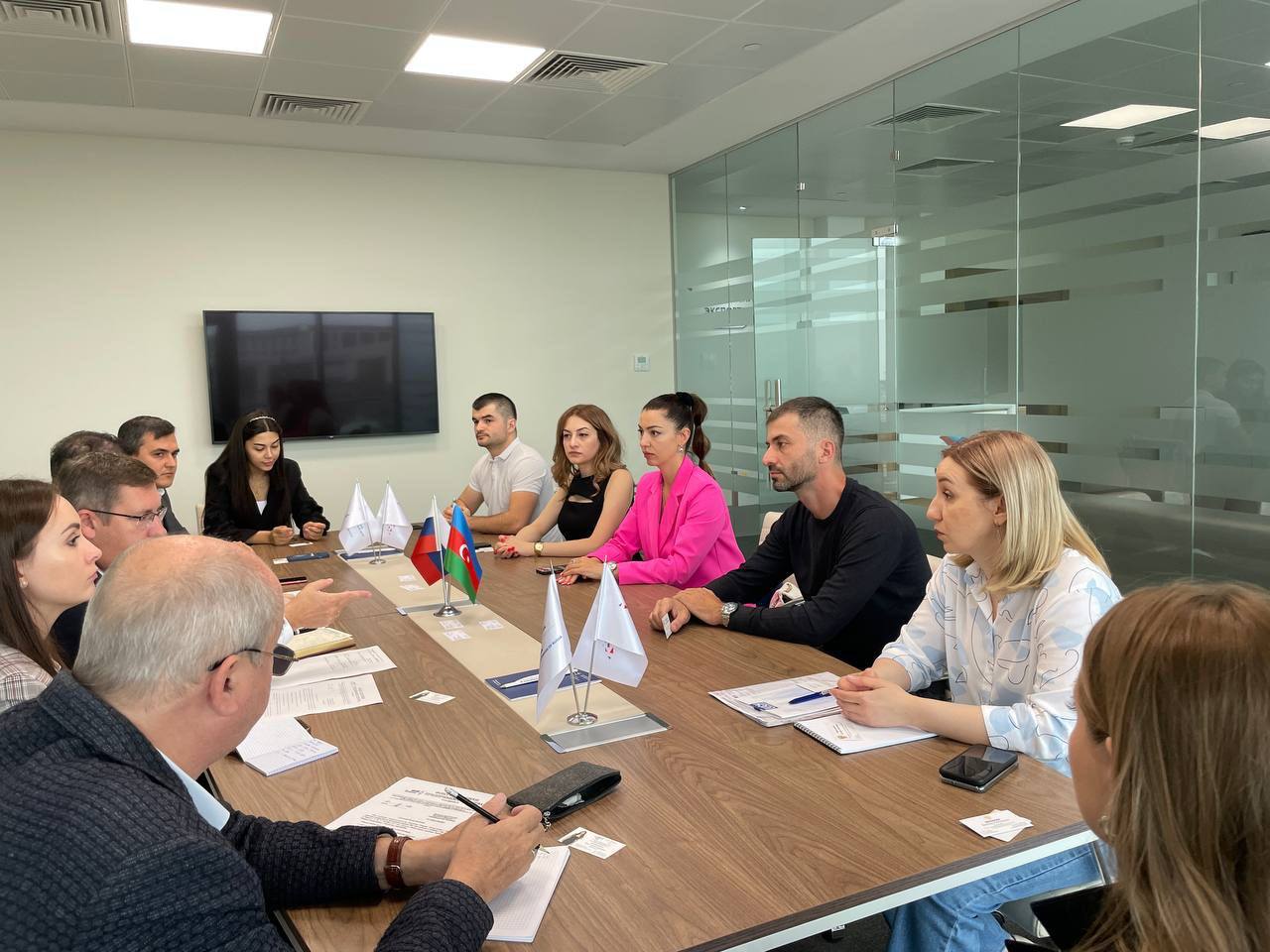 Работа делегации в Баку началась со встречи с торговым представителем РФ в Республике Азербайджан Русланом Мирсаяповым и руководителем российского представительства Экспортного центра в Баку Гулиевым Нури Ханлар оглы.