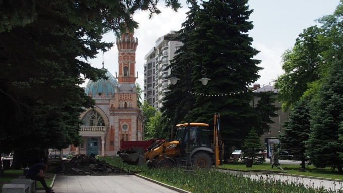 Благоустройство территории на площади перед гостиницей Владикавказ по улице Коцоева проводилось в 2017 году. Однако тротуарные дорожки перед Суннитской мечетью и прилегающая к ней территория, остались с прежним асфальтовым покрытием. Администрацией города было принято решение провести комплекс работ по благоустройству всей территории. «Необходимо привести рекреационную зону к единому облику. Помимо укладки брусчатки мы установим новые опоры освещения, лавочки и урны. За полтора месяца подрядная организация освоит весь запланированный объем работ», - пояснил Давид Короев, заместитель начальника управления благоустройства и озеленения АМС г. Владикавказа. Работы проходят в рамках муниципальной программы благоустройства и озеленения Владикавказа. Всего в нынешнем году запланировано обновление 21 общественной территории.