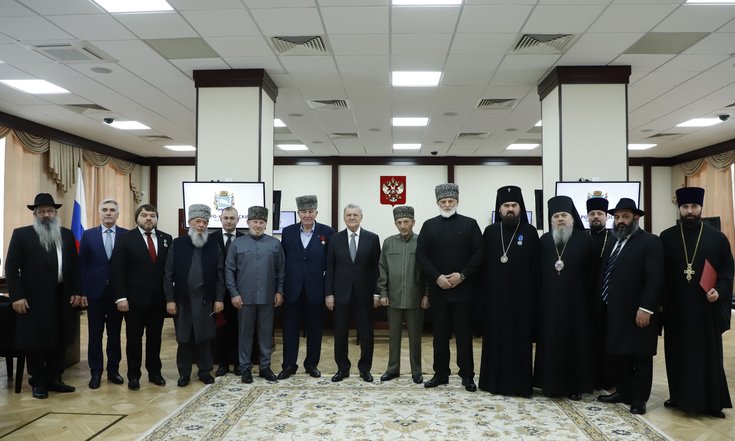 В беседе с представителями Русской Православной Церкви, муфтиями субъектов Российской Федерации по СКФО и председателями иудейских общин обсуждены вопросы взаимодействия в целях укрепления межнационального и межконфессионального согласия на территории Северного Кавказа.