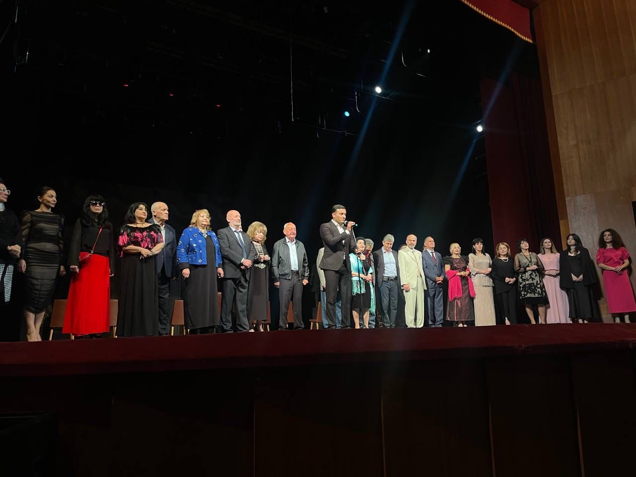 «Я очень счастлив видеть вас всех сегодня. Мы открываем 88-ой театральный сезон. Я безмерно рад, что старшие сегодня с нами, младшие, среднее поколение… 87-ой театральный сезон был очень плодотворный. Каждый из вас знает, что мы принимали ведущие театры России — и Вахтанговский, и буквально недавно Волгоградский. Сами побывали во многих городах, представив зрителям огромный репертуар», – сказал Валиев.