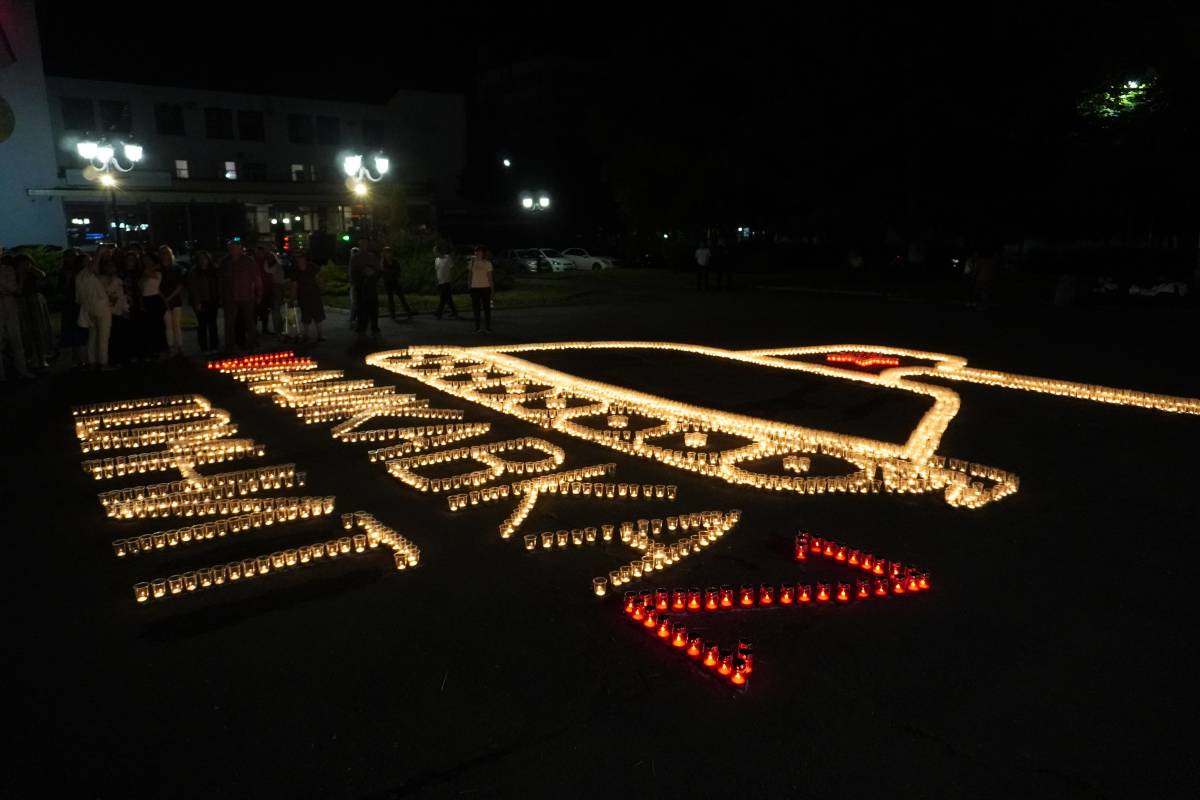 В преддверии Дня памяти и скорби на площади Победы горящими свечами выложили очертания легендарного танка «Т-34». Для создания инсталляции было использовано 10 тысяч свечей.