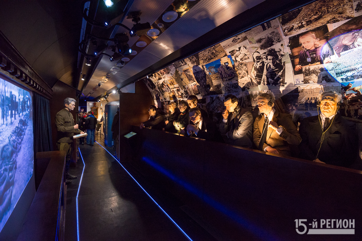 В этом году «Поезд Победы» дополнили новым экспозиционным вагоном. Он посвящен преступлениям японских милитаристов и Нюрнбергскому процессу. Погрузиться полностью в атмосферу помогает не только звуковое, но и видеосопровождение.