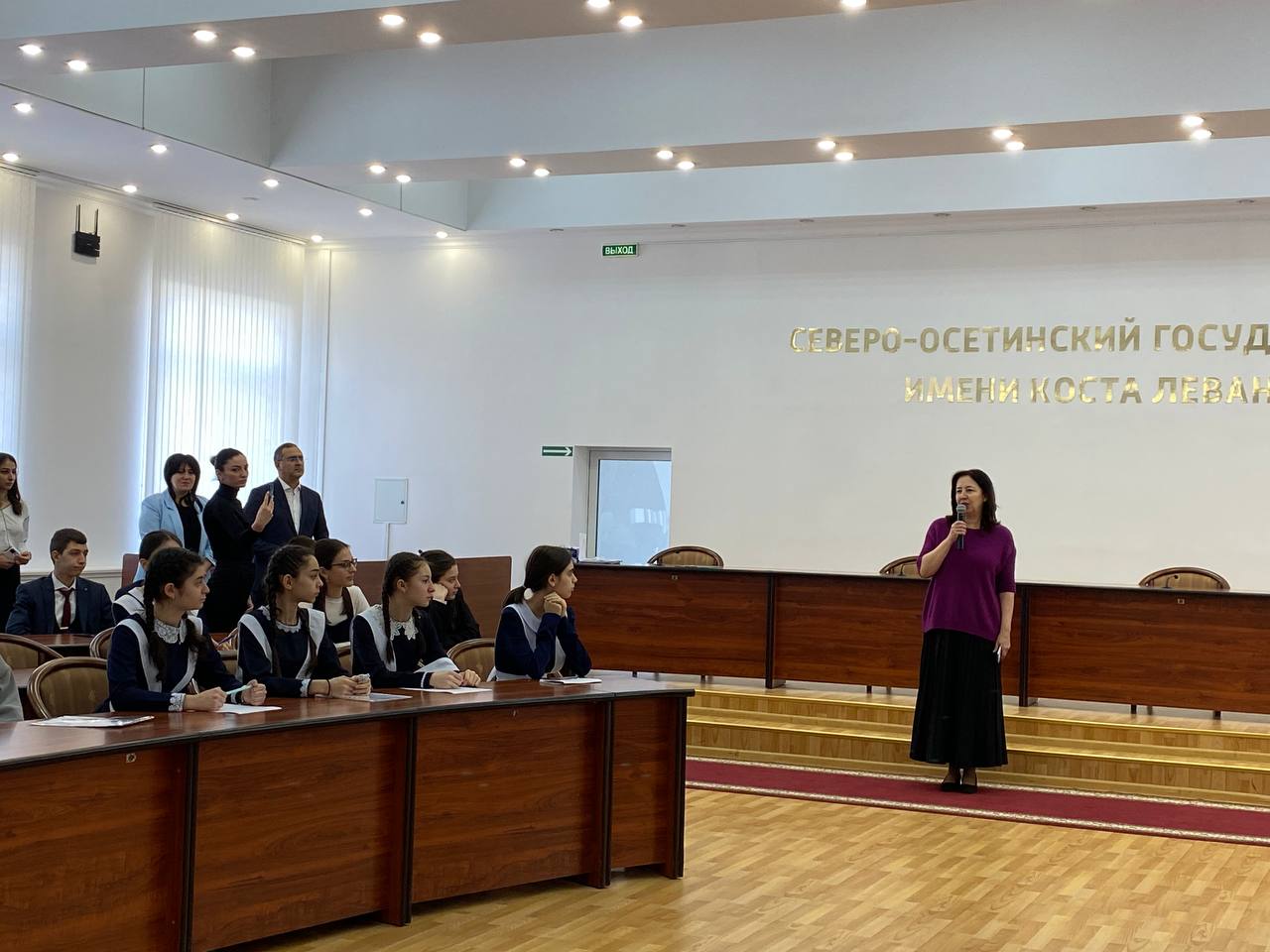 После регистрации школьников поприветствовали ректор университета Алан Огоев , начальник отдела нацобразования и языковой политики министерства образования Северной Осетии Ирина Накусова и декан факультета осетинской филологии Эльмира Гутиева . Студенты факультета осетинской филологии прочитали стихотворения на родном языке и сорвали полный зал аплодисментов.