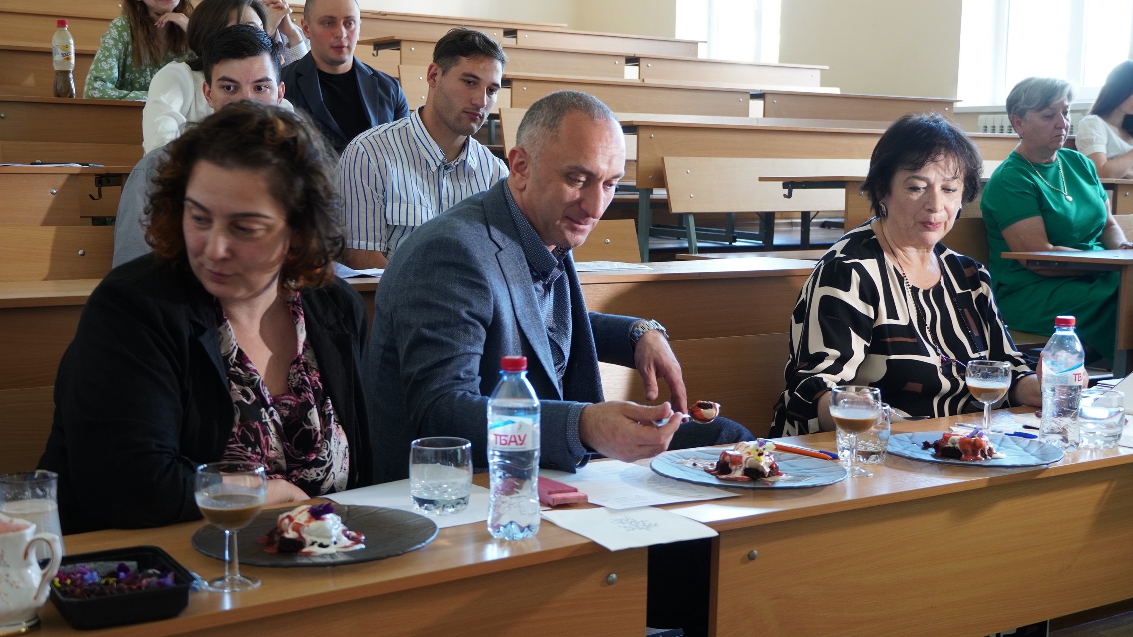 Работу по использованию ликеро-водочных изделий при производстве кондитерских полуфабрикатов представил выпускник Тамир Кцоев . Научным руководителем выступила кандидат биологических наук, доцент кафедры технологии продуктов питания СОГУ Елена Цагараева. Готовый десерт, разработка которого шла в течение полугода, студент представил на дегустацию членам комиссии.