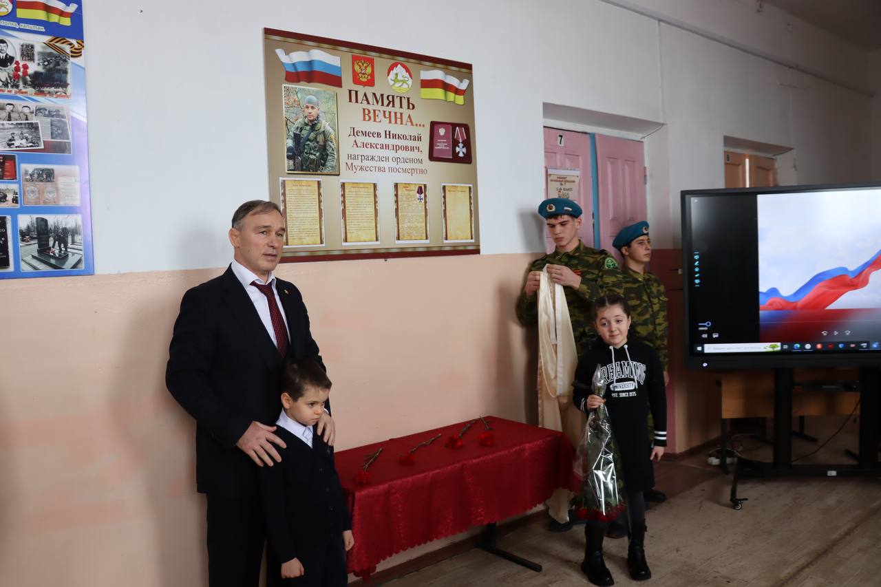 В нескольких школах правобережного района Северной Осетии открыли памятные стенды выпускникам, павшим во время участия в специальной военной операции на Украине. Мероприятия посетил Глава муниципального образования Правобережного района Сослан Фраев.