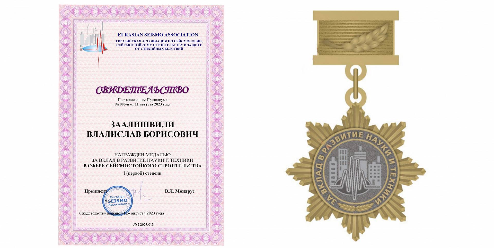 Поздравляем В.Б. Заалишвили с награждением медалью за вклад в развитие науки и техники в сфере сейсмостойкого строительства