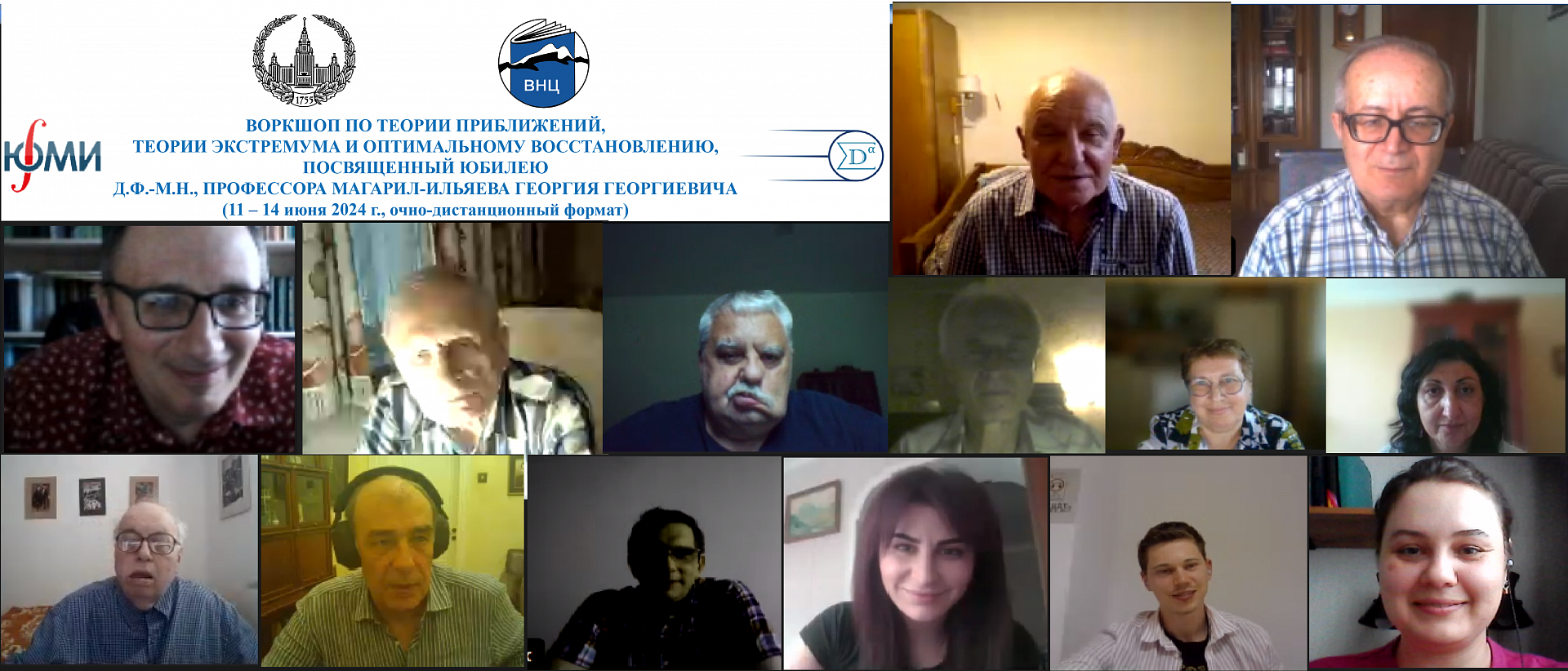 Открывая работу онлайн части мероприятия, модератор – начальник отдела математических исследований СКЦМИ ВНЦ РАН, ведущий научный сотрудник отдела функционального анализа ЮМИ ВНЦ РАН, к.ф.-м.н. Марат Амурханович Плиев , поздравил юбиляра с прошедшим юбилеем и пожелал крепкого здоровья, благополучия, новых жизненных успехов и творческих вершин. 13 июня в работе научной сессии приняло участие в общей сложности 30 человек, с докладами выступили четверо известных российских и зарубежных специалистов в области функционального анализа, теории приближений, общей теории экстремума и ее приложений, оптимального восстановления.