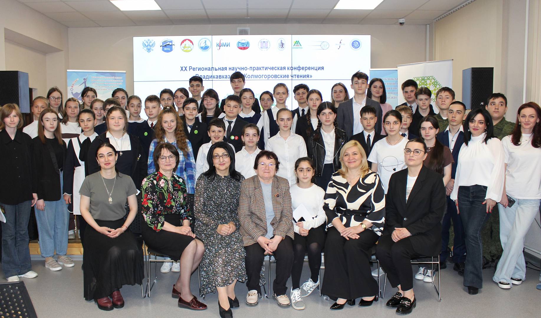 В открытии XX Региональной научно-практической конференции «Владикавказские Колмогоровские чтения» приняли участие заместитель директора ВНЦ РАН по научно-организационной и образовательной деятельности к.пед.н. Вера Сергеевна Абатурова, заместитель министра образования и науки РСО-А Андрей Владимирович Швецов, заместитель председателя Собрания представителей г. Владикавказа Зита Ибрагимовна Салбиева, заместитель председателя СОРО МРАУМ к.пед.н. Тамара Борисовна Бегиева, заместитель председателя регионального отделения «Движение первых» по РСО-Алания Жанна Юрьевна Маргиева, директор Центра «Вершина» Залина Георгиевна Вардашева, члены оргкомитета Конференции, учащиеся-конкурсанты и преподаватели.Первые «Владикавказские Колмогоровские чтения» состоялись в 2003 году, в год столетия академика Андрея Николаевича Колмогорова - одного из крупнейших математиков XX века и одного из основоположников современной теории вероятностей, которым были получены фундаментальные результаты в топологии, геометрии, математической логике, классической механике, теории турбулентности, теории сложности алгоритмов, теории информации, теории функций, теории тригонометрических рядов, теории меры, теории приближения функций, теории множеств, теории дифференциальных уравнений, теории динамических систем, функциональном анализе и в ряде других областей математики и её приложений. Идейным вдохновителем проведения в столице РСО-Алания Конференции, посвященной великому ученому, стал научный руководитель Владикавказского научного центра РАН, д.ф.-м.н., профессор Анатолий Георгиевич Кусраев.