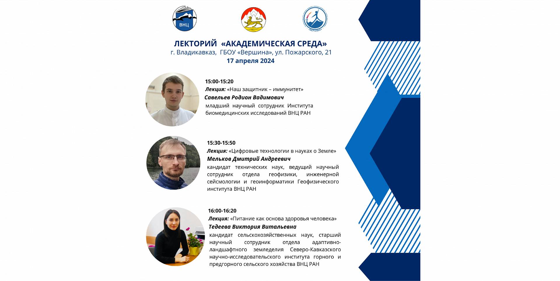 17 апреля 2024 года в образовательном центре «Вершина» состоялась шестая сессия Лектория ВНЦ РАН «Академическая среда» для учащихся 8-11 классов общеобразовательных школ РСО-А. Проект реализуется Владикавказским научным центром РАН совместно с Министерством образования и науки РСО-Алания.