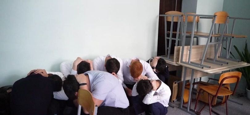 После соответствующего сигнала о проникновении вооруженных лиц в школу, дети забаррикадировали окна и двери. Укрылись в помещении у несущей стены. По тревоге прибыли экипажи группы задержания вневедомственной охраны Росгвардии. Специалисты сработали оперативно и задержали «злоумышленника».