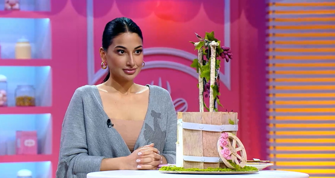 На встречу с Ренатом Агзамовым и членами жюри девушка принесла торт с заварным кремом из апельсина собственного приготовления в виде колодца, который обвивает виноградная лоза.