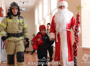 Утром солнечная погода сменилась на самую настающую зимнюю сказку, такой долгожданный в Северной Осетии снег повалил с неба хлопьями, и эта волшебная метель принесла во двор начальной школы селения Михайловское Деда Мороза, только не на привычных для всех оленях, а на самой настоящей пожарной машине. Позже такое же чудо случилось и у ворот средней школы № 7 во Владикавказе.