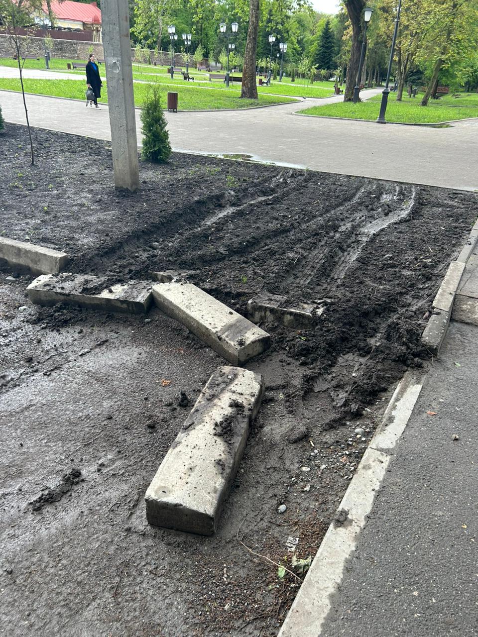 Вандалы сломали бордюры и испортили газон у входа в Центральный парк во Владикавказе