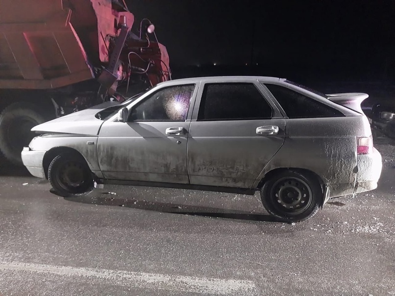 Легковой автомобиль столкнулся с «Камазом» на 9-м километре автодороги «Октябрьское-Сунжа».