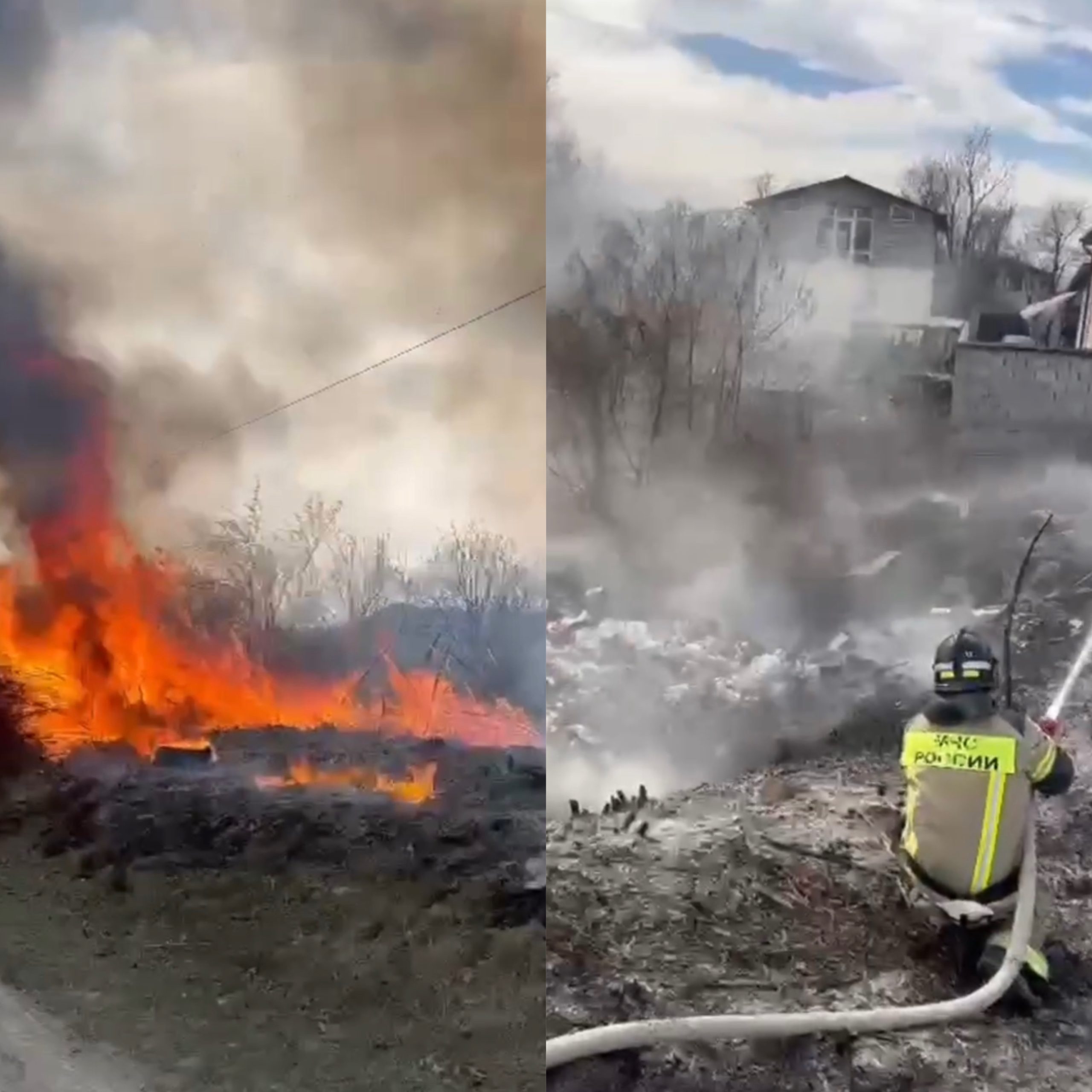Пожарные потушили возгорание сухой травы во Владикавказе