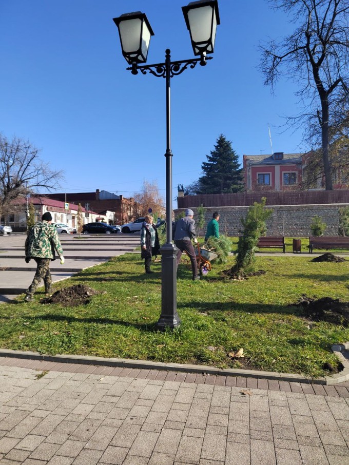 По требованию автора проекта благоустройства центрального парка имени Коста Хетагурова, архитектора Олега Припутнева, магнолии, которые были высажены ранее у входной группы со стороны улицы Горького, заменены на сосны.