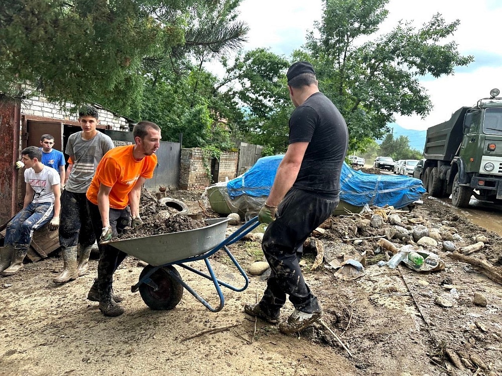 Добровольцы работают в поселках Южный и Карца, наиболее пострадавших от разгула стихии.