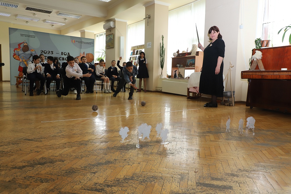 В Центральной городской библиотеке сегодня проходит настоящий этнографический праздник для ребят. Библиосумерки в этом году посвящены Нартскому эпосу и году Нартиады. Как рассказал начальник Управления культуры АМС г.Владикавказа Руслан Марзоев, знакомство с традициями и эпическим прошлым народа проще познается детьми в игровой форме. Цель акции - приобщение юных читателей к национальному эпосу. «Дети – это те, кому в будущем предстоит хранить эпос. Для того чтобы они знали как можно больше о своем прошлом и истории народа мы и проводим такие мероприятия», - отметил Марзоев. Прочувствовать Нартиаду и поучаствовать во всех мероприятиях пришли ребята из городских школ и воспитанники детских садов. В программе спортивные состязания, творческие конкурсы, театрализованные постановки и кулинарные мастер-классы. Ученица пятого класса школы № 38 Дзерасса Басиева уже была знакома с Нартским эпосом, но тем не менее узнала много нового: «Я узнала в какие игры играли дети нартов. Как появилась люлька «авдæн» и как ею пользовались. Нам рассказали чем питались нарты. Мы сами приготовили чуреки и попробовали это древнее блюдо. Мне очень понравилось!», - поделилась впечатлением Дзерасса. Особый интерес детей вызвали мастер-классы по оформлению пряников в форме барса, национального орнамента и мастерская «Станайы къæбиц» по приготовлению чуреков.