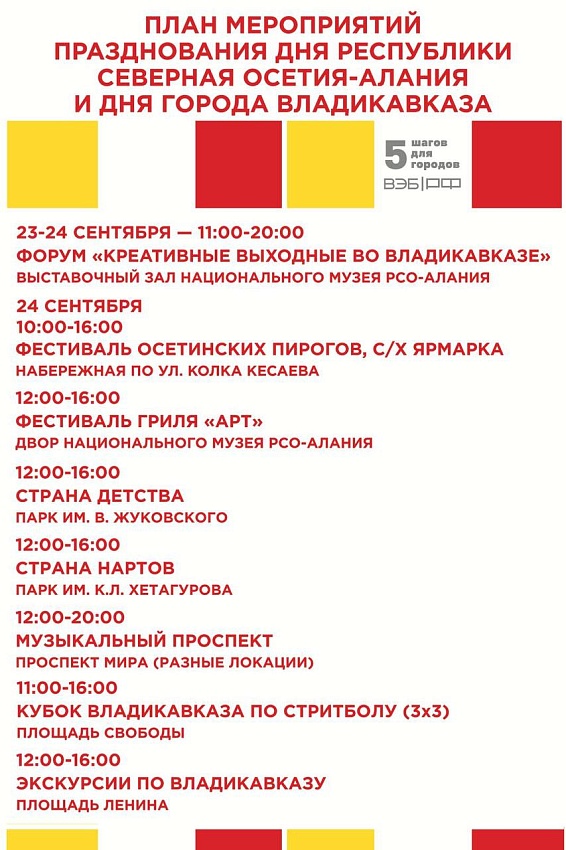 План мероприятий празднования Дня Республики Северная Осетия - Алания и Дня города Владикавказа.