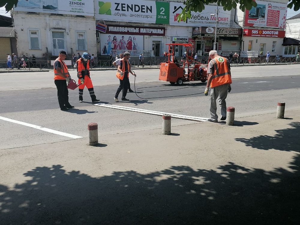 По улице Джанаева сотрудники «Спецэкосервис» наносят дорожную разметку