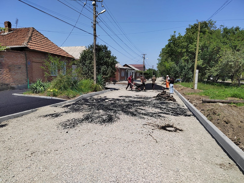 По улице Ставропольской обустроили основание грунта для дальнейшей укладки асфальта. Специалисты устанавливают бордюры. Будет отремонтировано 830 метров дороги.