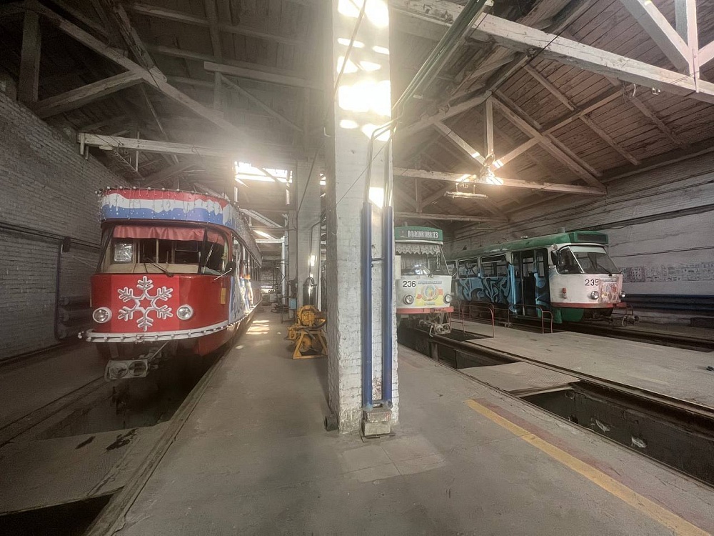 Специально для юных посетителей в депо заехал новый трамвай. Современные вагоны совсем недавно пришли в республику и наматывают первые круги по городским маршрутам.