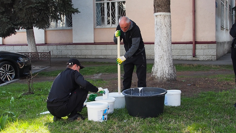 Сотрудники префектуры Промышленного района Владикавказа совместно со студентами Профессионального владикавказского колледжа побелили деревья по улице Чкалова.
