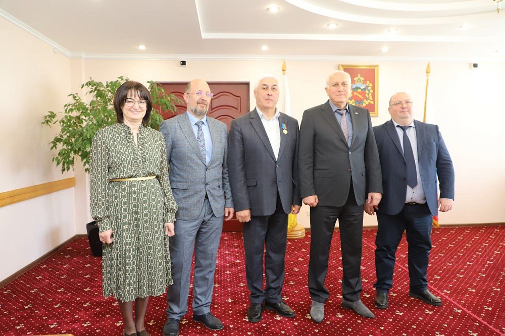 Глава АМС г. Владикавказа Вячеслав Мильдзихов вручил нагрудный знак «Владикавказ – город воинской славы» начальнику Управления организационной работы и взаимодействия с Собранием представителей г. Владикавказ Виталию Уртаеву, который отметил 60-летний юбилей. В награждении юбиляра приняли участие глава МО г. Владикавказ Александр Пациорин и заместители председателя Собрания представителей г.Владикавказ Зита Салбиева и Руслан Лагкуев.