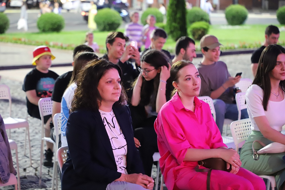 В столице республики акция началась в 20:00 на Площади Штыба, когда десятки прожекторов осветили небо над городом. Молодые артисты, среди которых Дамиан Карноухов, Илона Кесаева, Лада Шаталова, Владимир Качмазов и другие, исполнили лирические песни о войне.