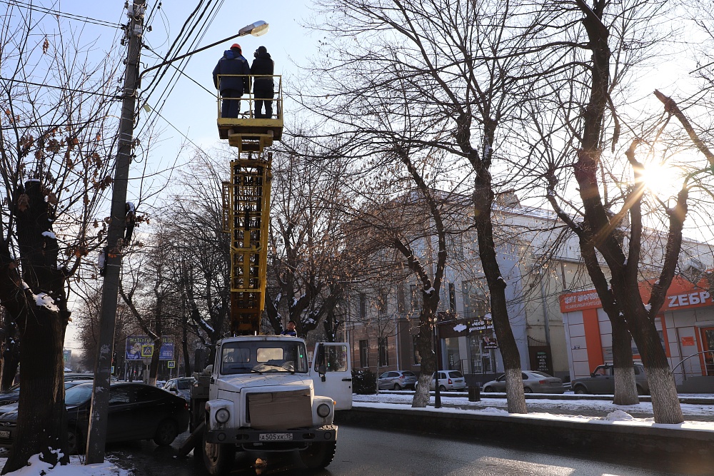 Во Владикавказе идет замена ламп уличного освещения.