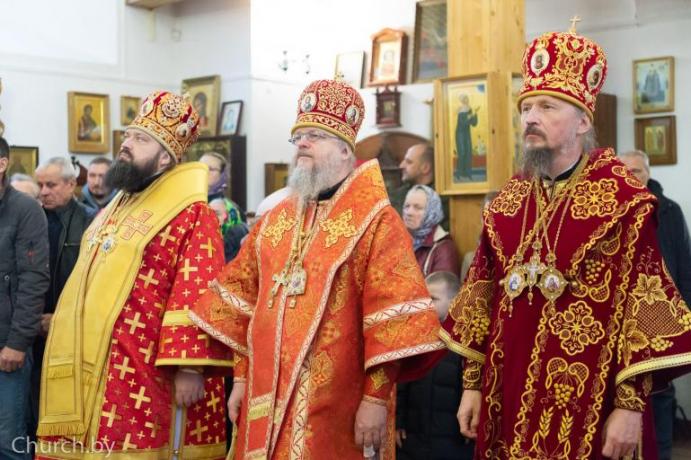 Его Высокопреосвященству сослужили архиепископ Владикавказский и Аланский Герасим, епископ Лидский и Сморгонский Порфирий, епископ Светлогорский Амвросий, викарий Гомельской епархии.