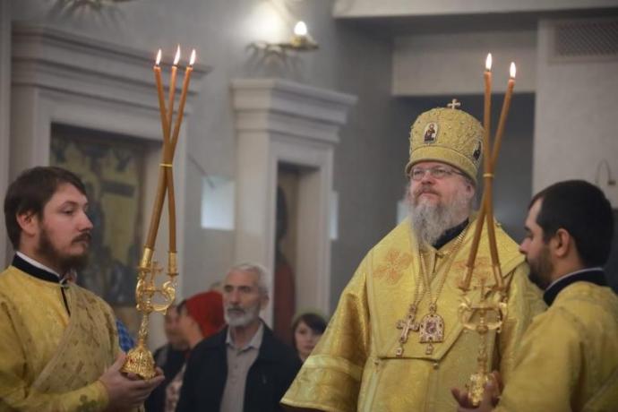 Богослужебные песнопения исполнил архиерейский хор под руководством регента Марии Качмазовой.