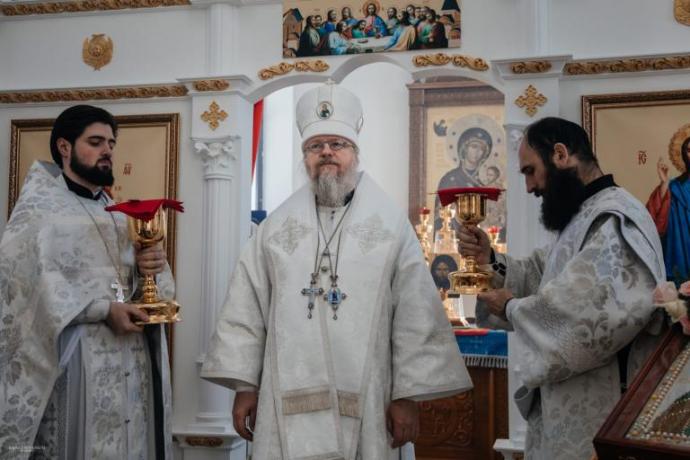 Правящему архиерею сослужили: секретарь епархии иерей Рустик Фенченко, настоятель храма Рождества Христова протоиерей Василий Шауэрман, клирики епархии.