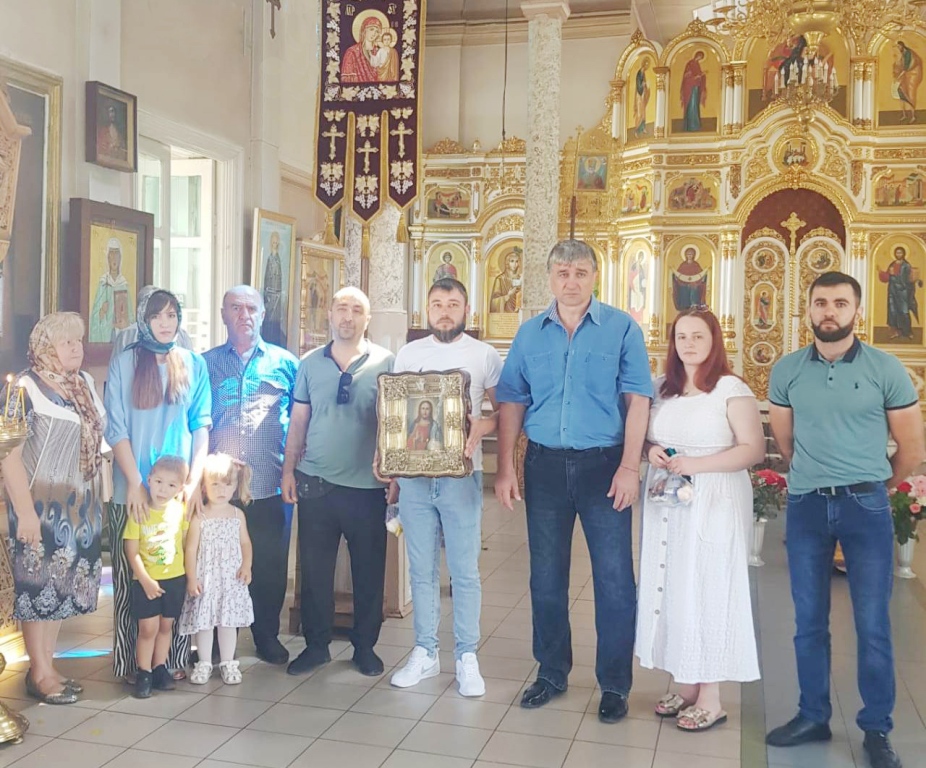 В Моздокской церкви Успения Божией Матери утром 7 июля состоялось праздничное богослужение в честь Рождества святого славного пророка, Предтечи и Крестителя Господня Иоанна. В этот день торжественно, при организационной поддержке председателя грузинского НКО «Иверия» Моздокского Дома дружбы Владимира Гигаури, Ташлыковы преподнесли в дар храму икону Иисуса Христа (на верхнем снимке). После богослужения детям и прихожанам были розданы сладкие подарки с пожеланиями мира и добра.