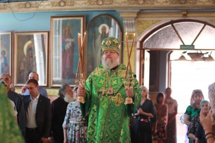 По окончании Божественной литургии Владыка Герасим возглавил традиционный крестный ход в честь престольного праздника, после чего обратился к верующим с архипастырским словом: