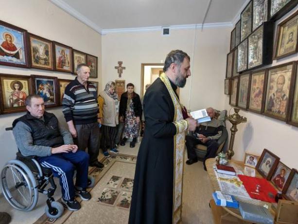15 февраля – один из 12 главных праздников Православной Церкви – Сретение Господне. В этот день Пресвятая Богородица, следуя ветхозаветному закону, принесла Младенца Иисуса на сороковой день по рождении в иерусалимский храм, чтобы посвятить Его Богу. По этому случаю иерей Георгий Рамонов (Храм Рождества Пресвятой Богородицы) провёл для жителей дома-интерната «Забота» молебен, а также совершил для желающих (в том числе для маломобильных и немобильных получателей социальных услуг) таинства Исповеди и Причастия.