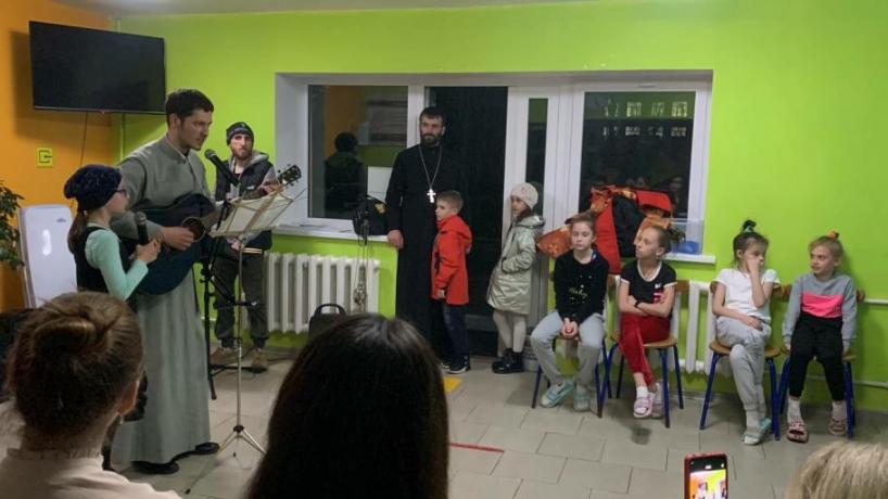 19 апреля 2023 года сотрудники Епархиальных отделов по социальному служению и благотворительности и по работе с молодежью посетили санаторий «Юность». Там с апреля 2022 года находятся беженцы с Донецкой и Луганской народных республик. Гости привезли с собой пасхальные сладости, вещевую помощь для детей. Иерей Даниил Булатников и диакон Петр Евстафьев отслужили молебен.