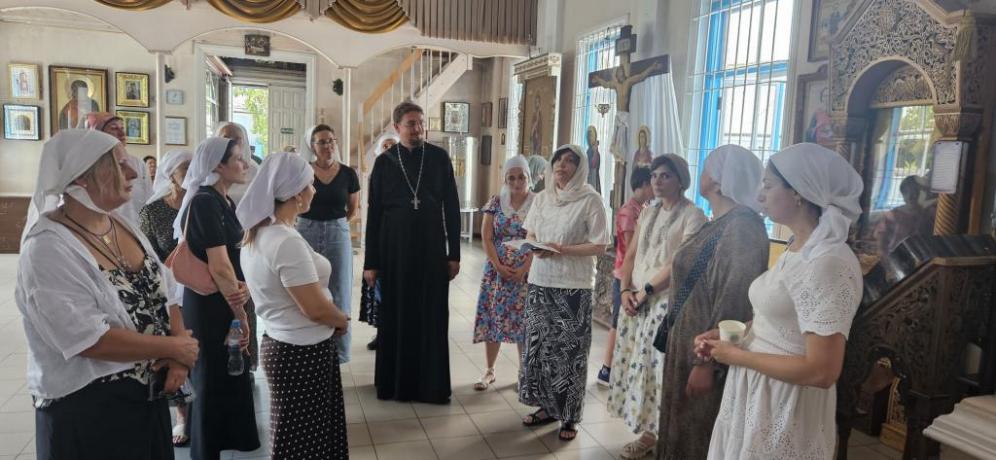 9 июля 2024 года, по благословению архиепископа Владикавказского и Аланского Герасима сестры милосердия имени святой благоверной княгини Марии Ясыни войскового храма в честь святого мученика Иоанна Воина совершили паломническую поездку в Моздокское благочиние.