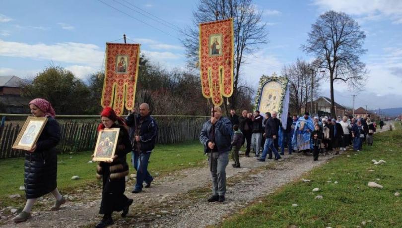 После окончания Божественной литургии в храме состоялся Крестный ход с образом Моздокской иконы Божией Матери, принесенным накануне престольного дня в сельский храм.