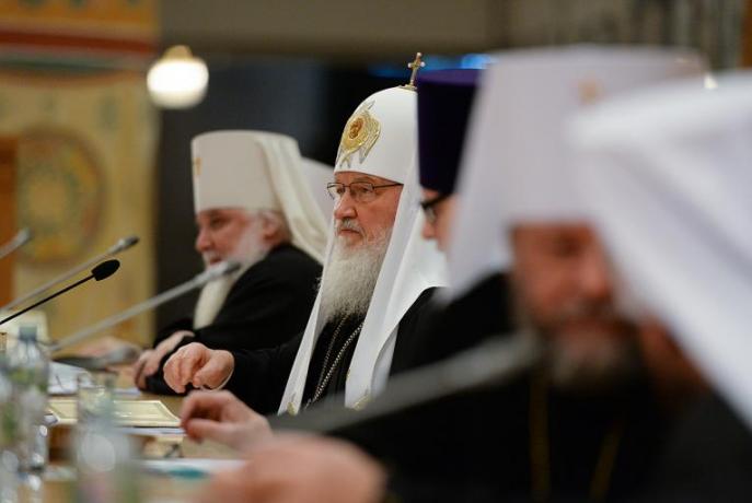 Предстоятель Русской Православной Церкви произнес вступительное слово, в котором приветствовал собравшихся и представил следующую повестку дня Архиерейского Совещания: