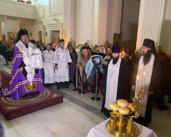 В храм прибыли множество прихожан, чтобы молитвенно встретить родившегося Богомладенца. Богослужение началось с чтения великого повечерия, на котором прозвучали древний гимн «С нами Бог», тропарь и кондак праздника. После богослужения Владыка преподал всем свое архипастырское благословение и поздравил молящихся с наступающим двунадесятым праздником Рождества Христова.