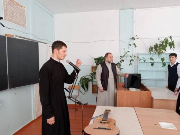 По инициативе иерея Бориса Бицоева - настоятеля храма святых апостолов Петра и Павла в с. Эльхотово Кировского района Северной Осетии – и согласия руководства школы №1 того же села, состоялась встреча учащихся с председателем молодежного отдела Владикавказской и Аланской епархии диаконом Петром Евстафьевым.