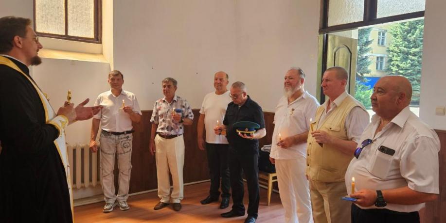По окончании построения все ветераны прошли в часовню в честь святого благоверного великого князя Александра Невского, расположенную на территории училища. Здесь на братской молитве во время панихиды ветераны вспомнили о своих почивших боевых товарищах.
