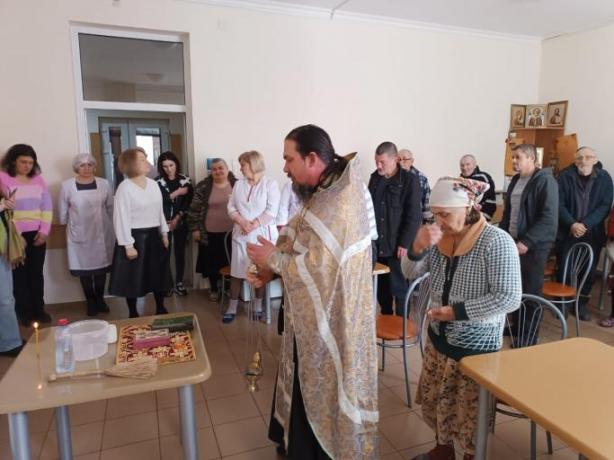 Подопечным приюта привезли угощения, фрукты, сладости, осетинские пироги. Руководитель епархиального отдела протоиерей Леонид Болтенков совершил молебен, затем пообщался с сотрудниками и подопечными приюта.