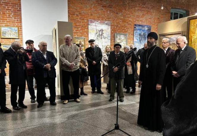 Владикавказскую епархию на мероприятии представлял настоятель храма св. Нины протоиерей Георгий Хворостьянов, который в своем слове передал юбиляру поздравление от правящего архиерея архиепископа Герасима, и обратился с пастырским словом к участникам и гостям выставки.